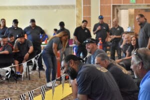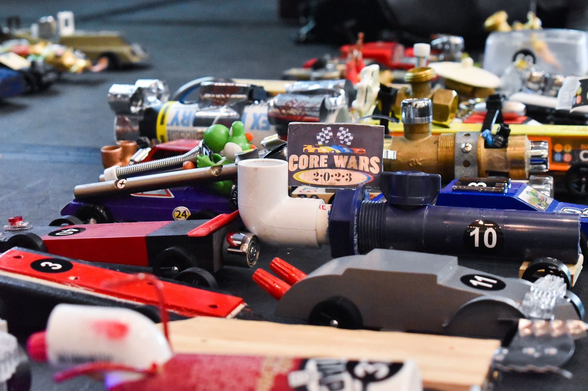 Resident service technicians crowded around a bright yellow racetrack, cheering for Pinewood Derby cars crafted with electrical terminals as exhaust pipes, doorstops as steering wheels and adorned with Lego Batman, National CORE’s logo – and one even done up as The Obliterator.