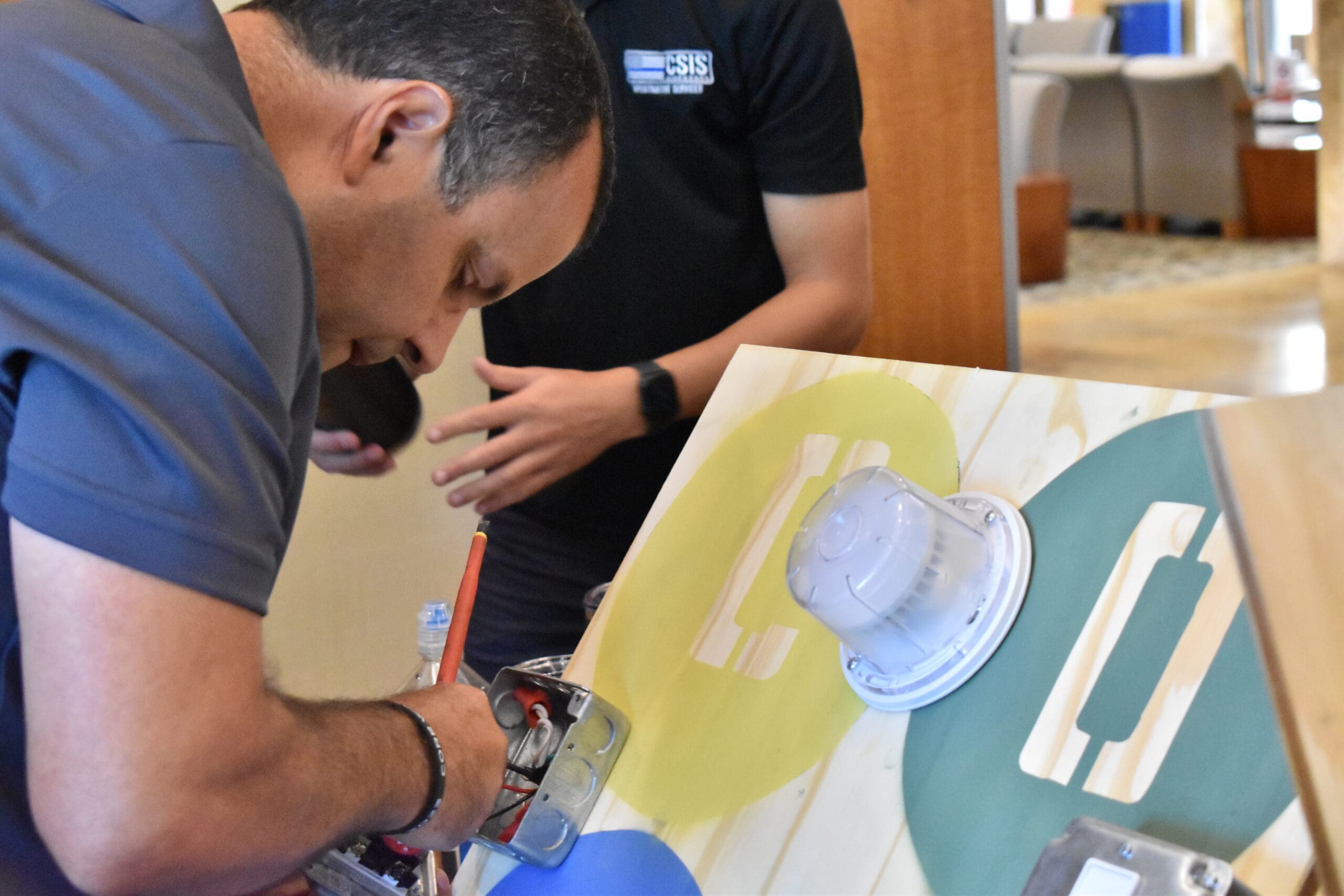 Maintenance staff members crowded around game tables for a chance to hastily put together vinyl flooring, assemble and disassemble water pipes as well as meticulously wire light fixtures. The winners of each game were handed VISA gift cards.