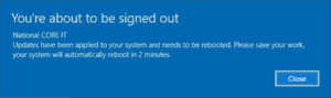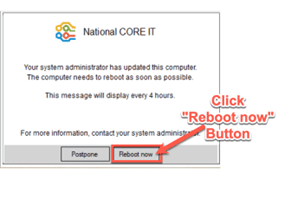 These automatic reboots will only occur after a software update and/or security patch has been applied to your system, where a reboot is necessary to complete the installation. This proactive approach is crucial to maintaining a secure environment for all National CORE users and systems.