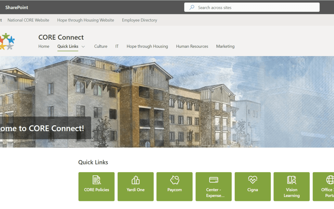 National CORE and Hope through Housing have officially launched CORE Connect, a comprehensive digital hub designed to revolutionize the way employees access tools, resources, and information. CORE Connect is tailored to streamline workflows, enhance productivity and foster greater connections across the organization. With user-friendly navigation and an array of features, CORE Connect is poised to become an essential tool in supporting employees as they carry out National CORE’s mission.
